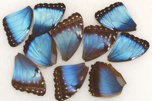 | A PACKAGE OF 10 MORPHO WINGS. GREAT FOR THOSE DOING ART JEWELRY. THESE ARE THE WINGS FROM MORPHO HELENA NARCISSUS FROM COSTA RICA |
